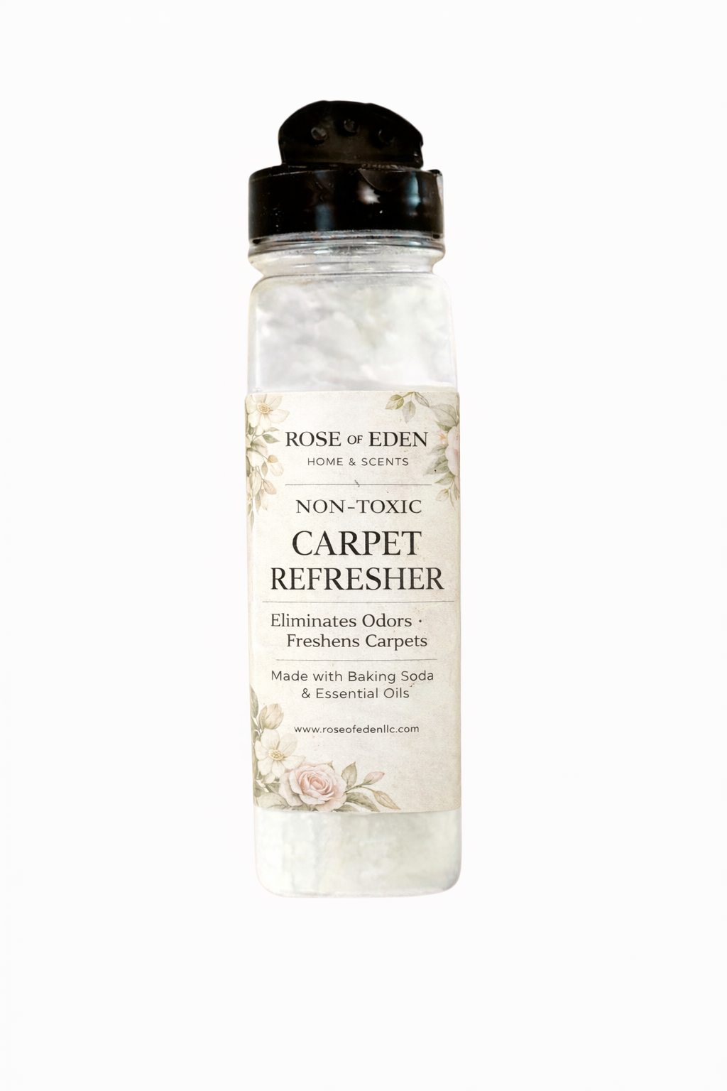 Unlike commercial carpet powders that rely on synthetic fragrance and plastic-based binders, our formula refreshes carpets without coating fibers in artificial residue.